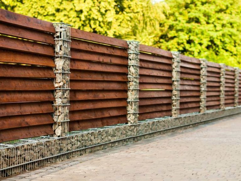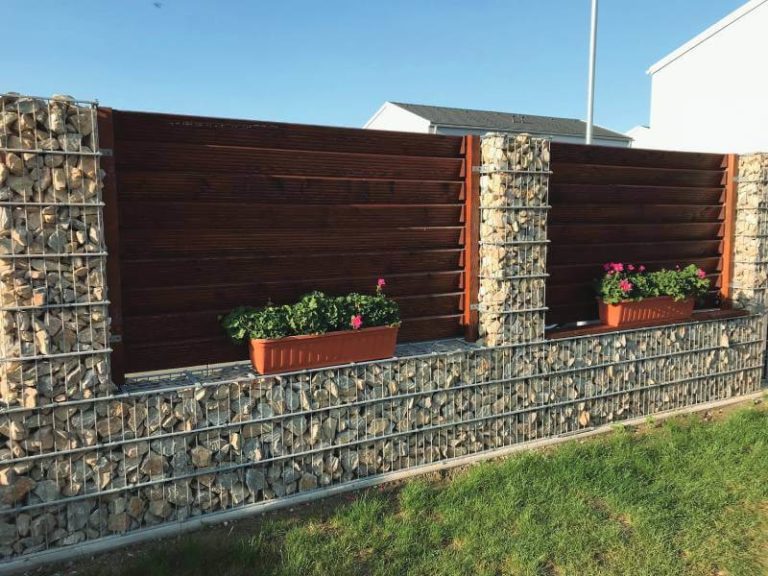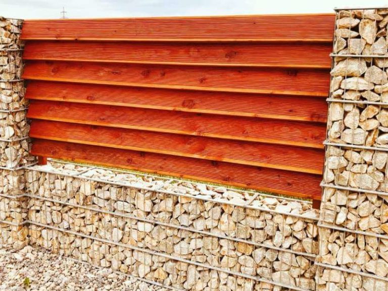 - einem Gabionensockel und Holzlattensystem,